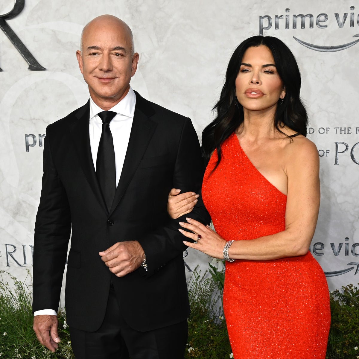 Jeff Bezos Girlfriend Lauren Sanchez Shimmers In Red Dress For Lotr Wwd
